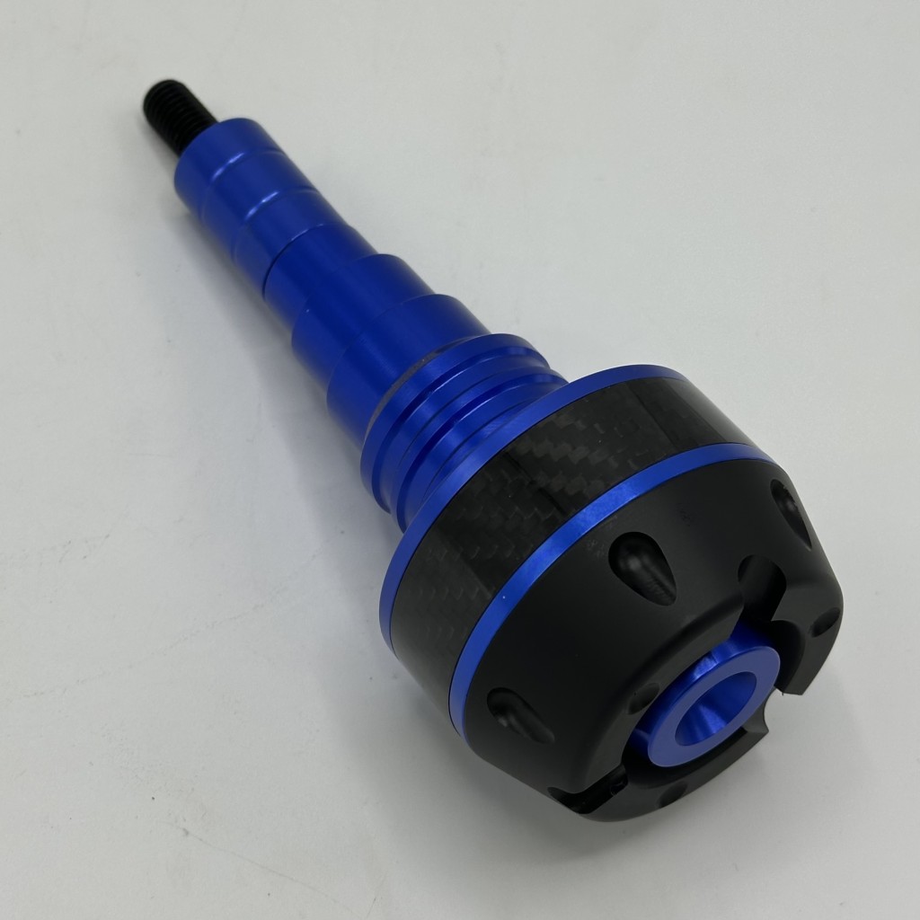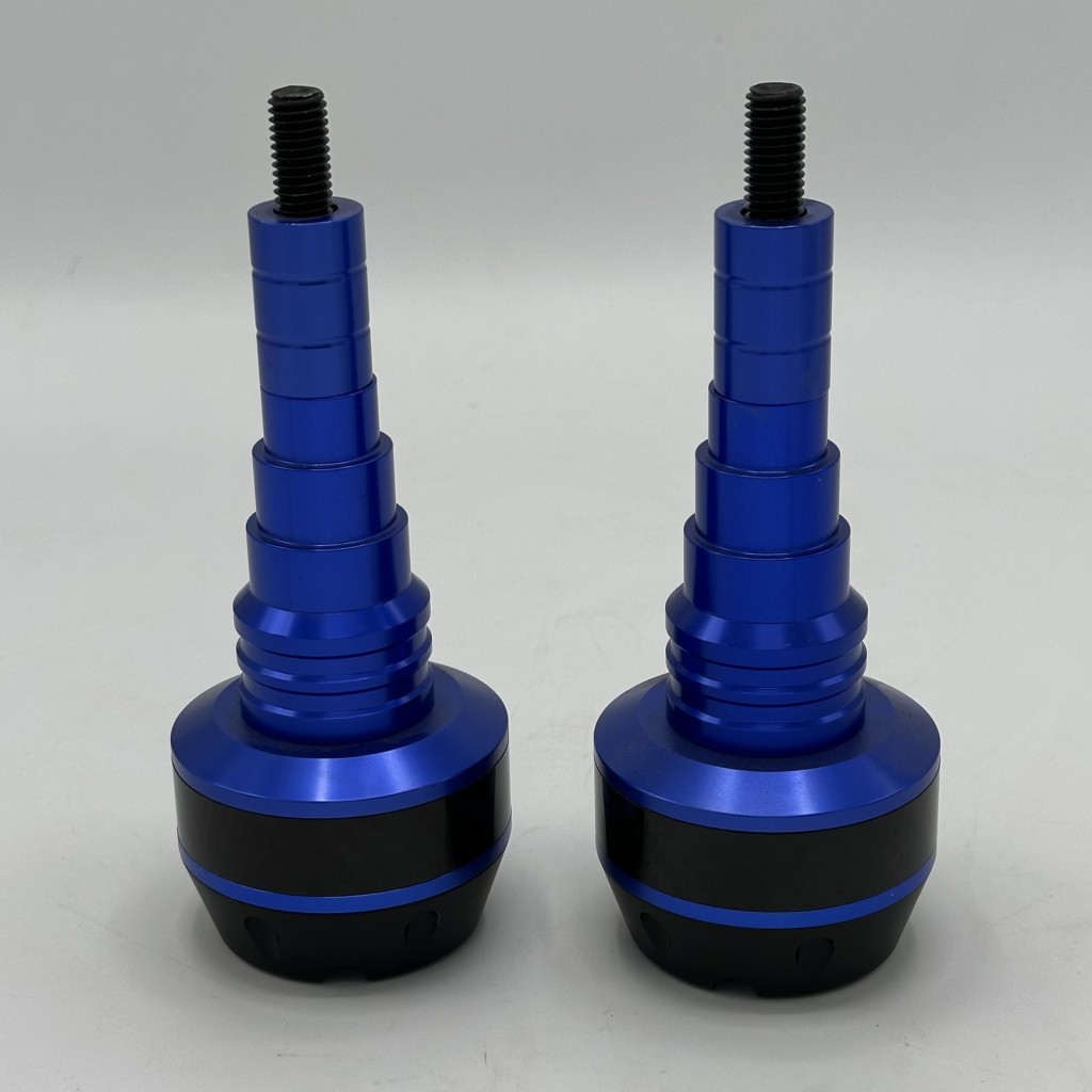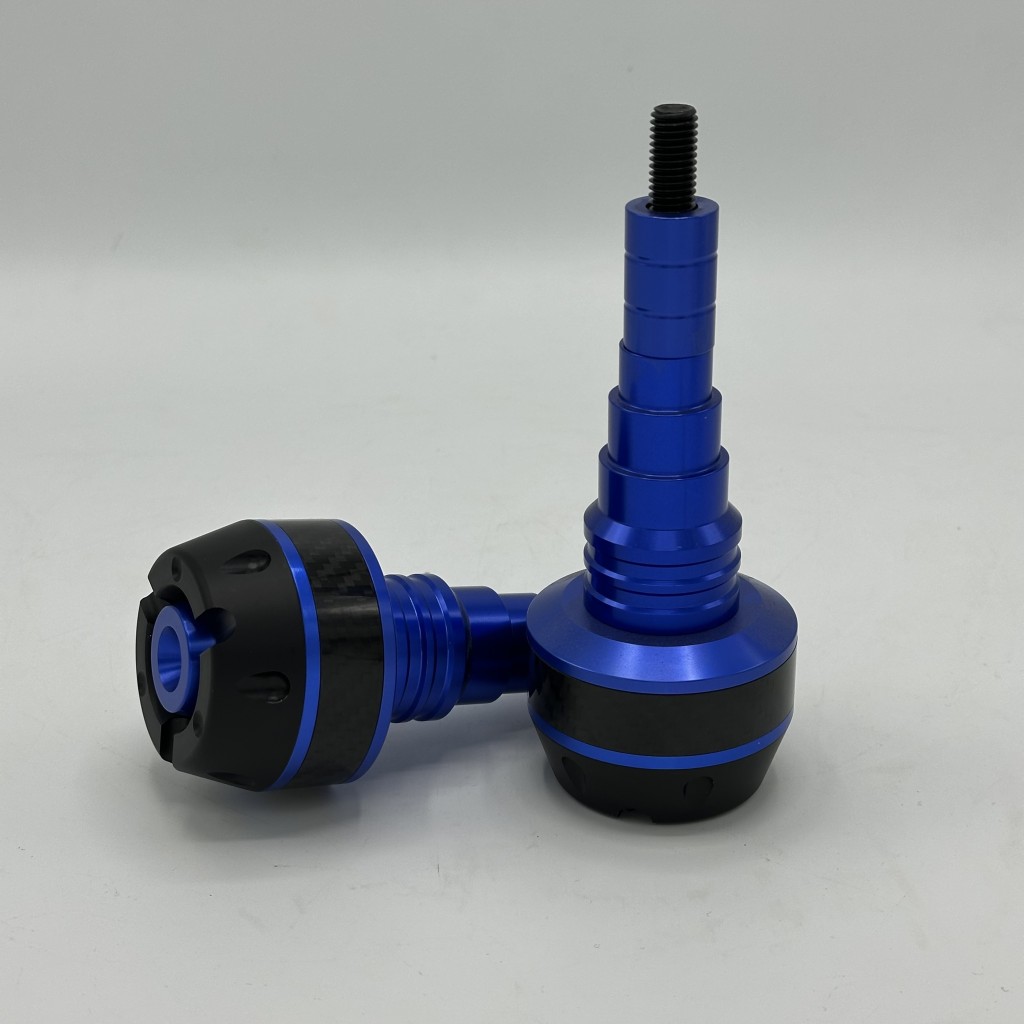 بدنه اصلی از آلیاژ آلومینیوم CNC با رنگ های مختلف آنودایز شده ساخته شده که هم مقاومت بالایی در برابر ضربه دارد و هم ظاهر اسپرت و جذابی به موتور میدهد. بخش پایینی از پلاستیک فشرده و مقاوم (Delrin/ABS) تشکیل شده که هنگام تماس با زمین ضربه را جذب کرده و مانع انتقال مستقیم فشار به شاسی و بدنه موتور میشود. طراحی چندپلهای و مخروطی شکل آن باعث توزیع بهتر نیرو و کاهش سایش در زمان سر خوردن روی زمین میشود.