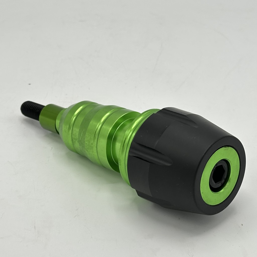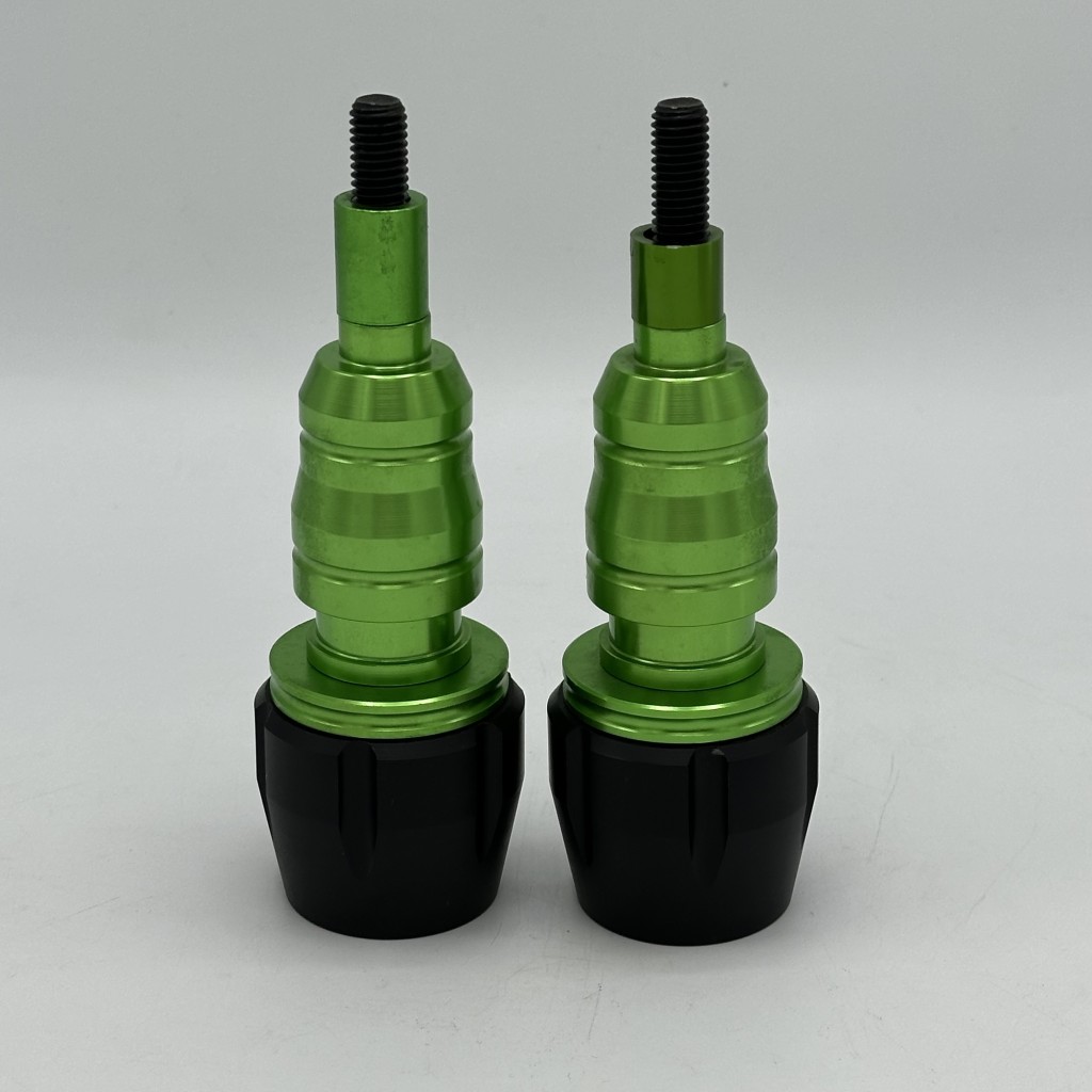 بدنه اصلی از آلیاژ آلومینیوم CNC با رنگ های مختلف آنودایز شده ساخته شده که هم مقاومت بالایی در برابر ضربه دارد و هم ظاهر اسپرت و جذابی به موتور میدهد. بخش پایینی از پلاستیک فشرده و مقاوم (Delrin/ABS) تشکیل شده که هنگام تماس با زمین ضربه را جذب کرده و مانع انتقال مستقیم فشار به شاسی و بدنه موتور میشود. طراحی چندپلهای و مخروطی شکل آن باعث توزیع بهتر نیرو و کاهش سایش در زمان سر خوردن روی زمین میشود.