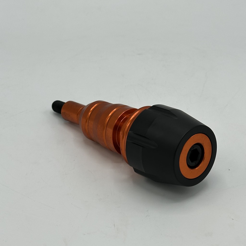 بدنه اصلی از آلیاژ آلومینیوم CNC با رنگ های مختلف آنودایز شده ساخته شده که هم مقاومت بالایی در برابر ضربه دارد و هم ظاهر اسپرت و جذابی به موتور میدهد. بخش پایینی از پلاستیک فشرده و مقاوم (Delrin/ABS) تشکیل شده که هنگام تماس با زمین ضربه را جذب کرده و مانع انتقال مستقیم فشار به شاسی و بدنه موتور میشود. طراحی چندپلهای و مخروطی شکل آن باعث توزیع بهتر نیرو و کاهش سایش در زمان سر خوردن روی زمین میشود.